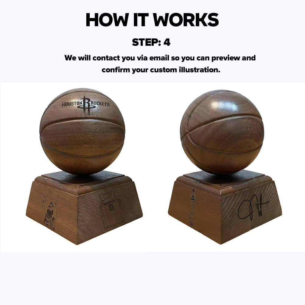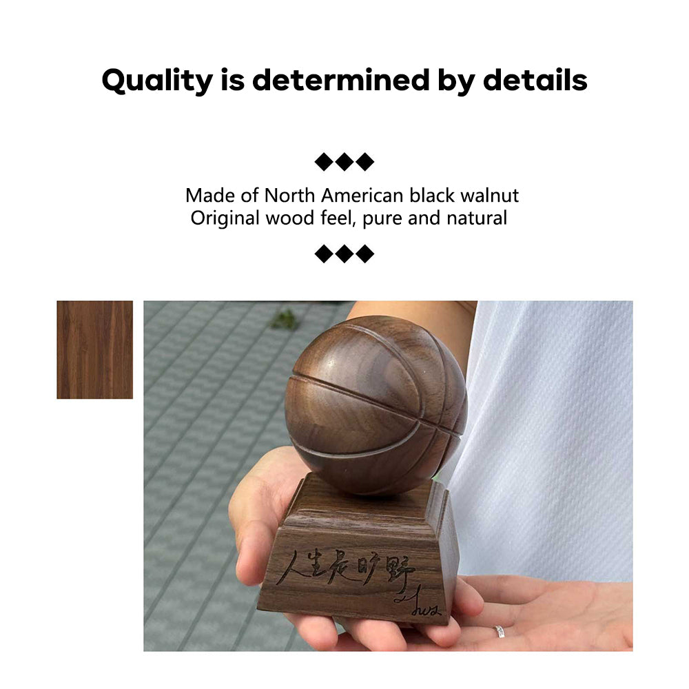 Handcrafted from solid walnut with laser-engraved details (name/logo). Perfect for awards, decor, or gifts. Natural wood grain meets sporty sophistication—a timeless tribute to the game. 🏀✨